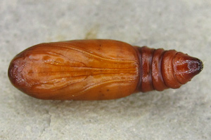 5: Deutschland, Sachsen, Dübener Heide, Umg. Doberschütz, Raupenfund am 2. September 2006 an Espe, e.l. 29. Mai 2007 (leg., cult., det. & Foto: Heidrun Melzer)