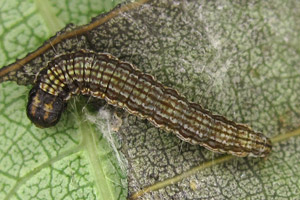 3-5: 9 mm, Deutschland, Niedersachsen, Region Hannover, Rande des Altwarmbüchener Moors bei Klein Kolshorn, 65 m, leg. Blattumschlag mit zwei Jungraupen an Populus tremula (Espe), 19. Juni 2017, Zuchtfotos 23. Juli 2017 (cult., det. & fot.: Tina Schulz)