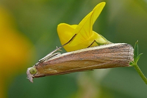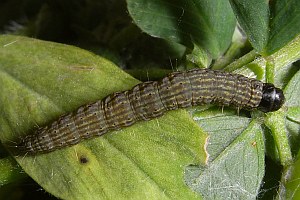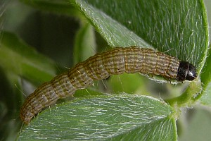 Für die Raupe dieser Art werden in der Literatur zahlreiche Arten und Gattungen der Schmetterlingsblütler (Fabaceae (=Papilionaceae)) angeführt. Zumeist bleibt unklar, ob es sich um Freiland-Funde oder Zuchtbeobachtungen handelt. Rößler ([1867]: 401) wird konkret: "Die Raupe entdeckte A. Schmid den 29. Juni 1856 fast erwachsen in leichtem Gespinnst auf dem Erdboden unter Lotus corniculatus die Blüthen verzehrend."