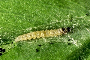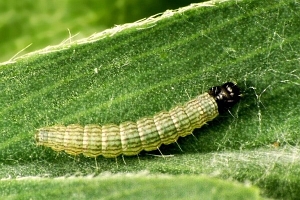 Schütze (1931) schrieb: "In leichtem Gespinst unter Lotus corniculatus (in röhrenförmigen Gängen - Schmid), verzehrt die Blätter (Kaltenbach)." Der Gewöhnliche Hornklee dürfte in der Tat eine wichtige Raupennahrungspflanze der Art sein, ganz gewiss aber nicht die einzige. In der Literatur werden - in der Regel ohne Primärquelle und ohne Unterscheidung zwischen Zuchtfutter und Freiland-Raupennahrung - genannt: Medicago sativa (Saat-Luzerne), Medicago lupulina (Hopfen-Luzerne), Trifolium pratense (Roter Wiesenklee, Rot-Klee), Trifolium repens (Weiß-Klee), Ononis repens (Kriechende Hauhechel), Hippocrepis comosa (Hufeisenklee) - als Freiland-Raupennahrung sind sie alle noch zu bestätigen. Diese Liste ist sicher noch unvollständig. Angaben zu Nicht-Fabaceen sind allerdings wenig glaubhaft.