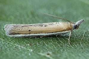 Auf ukmoths [Artseite auf ukmoths.org.uk] wird ein e.l.-Falter von Lathyrus japonicus gezeigt und erläutert: "The larvae feed on sea pea (Lathyrus japonicus), common bird's foot trefoil (Lotus corniculatus) and spiny restharrow (Ononis spinosa), feeding internally in the pods."
