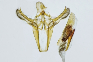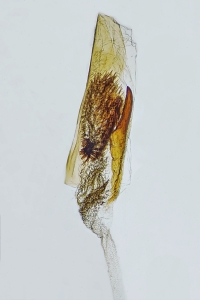 Slamka (2019: 138) fasst zusammen: "Larva lives in flower buds, later in flower's "fluff" of Tamarix canariensis (Canary Is., Huelva); probably also on other Tamarix spp. (? T. gallica) in SW Europe and N Africa. In Egypt and Israel the larva must live on different Tamarix spp. (maybe T. nilotica or T. parviflora), because T. canariensis and T. gallica do not occur in Egypt and Near East".