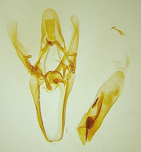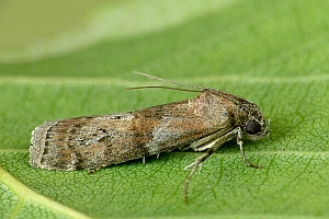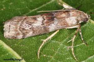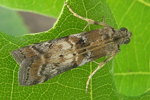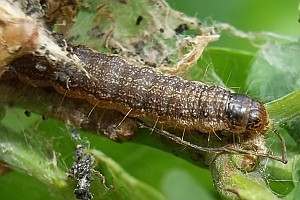 Slamka (2019: 153) formuliert unkritisch: "Brown larva lives 8-6 (it overwinter on the ground under fallen leaves) in silken tube among leaves and shoots of oaks (e.g. Quercus robur, Q. ilex Q. pyrenaica) as well as on Rosaceae (Pyrus spp., Malus spp.) ans Castanea sativa (see also Huertas-Dionisio (2017)) [...] A pest of young oaks, apples and pears (Sinev, 1999)."
