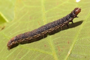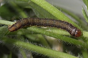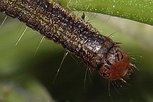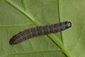 Die im Forum zusammengetragenen Raupenmeldungen beziehen sich - mit einer Ausnahme - auf Eichen; und wenn eine konkrete Art genannt wurde, dann immer die Stiel-Eiche (Quercus robur). Die Ausnahme ist die unten gezeigte Raupe, die Heidrun Melzer am 19. April 2007 bei Bad Blankenburg (Thüringen) an Esparsette fand, und die sie mit dieser Pflanze dann auch weiterfütterte und zum Falter erzog. - Es könnte also sein, dass sich Raupen im letzten Stadium auch draußen mit anderem Notfutter ernähren lassen.