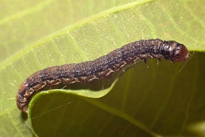 Liest man bei Huertas-Dionisio (2017: 49) nach, erfährt man von eigenen Raupenfunden in Huelva (Spanien) an Quercus ilex ssp. ballota und Quercus suber in den Monaten März bis Mai, also nach der Überwinterung; die Angaben zu anderen Eichen beruhten hingegen auf Literaturangaben, Angaben zu Pflanzen anderer Gattungen und Familien ausschließlich auf einer alten Literaturangabe aus Frankreich, bei der es ebenfalls um zusammenfassende Sekundärliteratur handelt: "Ha sido citada sobre Quercus pyrenaica Willd. (Soria-Carreras, 1987), Quercus ilex L., Castanea sativa Mill., Prunus domestica L., Pirus malus L. y Pirus communis L. (Lhomme, 1935). En Huelva, las orugas se capturaron a finales de marzo, en abril y en mayo de 1982 a 1988, sobre encina (Quercus ilex subsp. ballota Desf.) y alcornoque (Quercus suber L.), viven en un refugio hecho entre dos hojas y según van creciendo unen varias hojas terminales (fig. 14), cuando se preparan para pasar a crisálida, se vuelven rosáceas, bajan al suelo y hacen un capullo bajo la hojarasca, saliendo los adultos en mayo, junio y julio del mismo año."