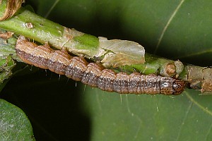 Schmid (2019: 728) liefert noch ein interessantes Detail zur Überwinterung, die keineswegs immer am Boden stattfinden muss: "Die Jungraupe überwintert an den Ästen ihrer Nährpflanze, der Eiche (Quercus sp.), gerne hält sie sich dabei in alten Astgallen auf (1-3) [...]" - die Ziffern stehen dabei für die entsprechenden Fotobelege. Wahrscheinlich ist Überwinterung an der Pflanze sogar der Normalfall, denn sonst müssten die Räupchen im Frühjahr alle erst auf die Bäume klettern.