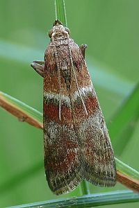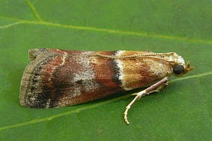 Die beiden Arten Acrobasis repandana und Acrobasis tumidana unterscheiden sich im Schuppenwulst, der auf der inneren Querbinde liegt, sowie durch einen kleinen Bereich mit aufgestellten Schuppen im Bereich der Flügelwurzel. [Helmut Kolbeck]