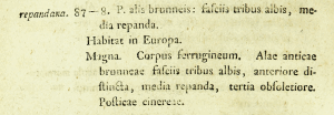 - Erstbeschreibung: Fabricius, J. C. (1798): Supplementum Entomologiae Systematicae. I-IV, 1-572. — Digitalisat der Bibliothèque nationale de France: [478].