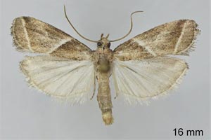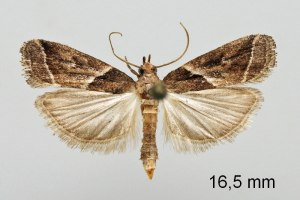 15-16: Russland, Oblast Moskau, Bezirk Orechowo-Sujewo, Dorf Topolinyy, 26. Juni 2010, am Licht (det. & Fotos: Andrey Ponomarev). Diese beiden Bilder waren bis 15.01.2015 unter Nyctegretis triangulella eingestellt. [Bestimmungsänderung]Forum