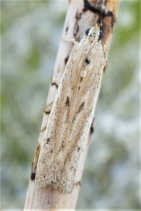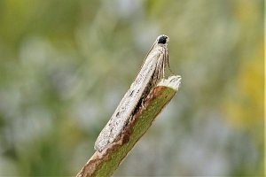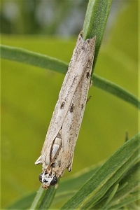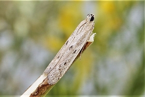 Letzteres - die Nutzung und Schädigung von Sonnenblumen (Helianthus annuus) - geht u.a. aus der Grundlagen-Arbeit von Szabó et al. (2009) hervor. Diese stellten fest, dass der sommerliche Befall der Sonnenblumen im Nordosten Ungarns umso stärker war, je mehr Disteln es im Umkreis von 500 m um die Felder im Frühjahr gab. In dieser Zeit fanden sie die meisten Raupen in den Blütenköpfen von Cirsium arvense, Cirsium canum, Cirsium brachycephalum, Carduus acanthoides, Carduus nutans und Onopordum acanthium - einfach weil das die an den unterschiedlichen Standorten häufigsten Arten waren. Sie schlossen: "The phenology of these non-culitaved host plants preceeds the sunflower, which enables a larval generation of the pest to develop into adults and infest sunflower, at the time when the plant is most susceptible for egglaying. Our results show the importance of controlling these feral host plants to decrease the reservoir of H. nebulellum and to lower the possibility of the pest’s movement into cultivated sunflower in the next generation."