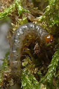 7: ♀, Deutschland, Sachsen, Dübener Heide, Umgebung von Doberschütz, Raupe in Polster von Hypnum cupressiforme 17. April 2010, e.l. 23. Juni 2010 (leg., cult. & Foto: Heidrun Melzer), det. Christian Kaiser & Matthias Nuß, conf. durch GU C. KaiserForum