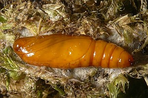 1-2: Deutschland, Sachsen, Dübener Heide, Umgebung von Doberschütz, Raupenfund in Polster von Hypnum cupressiforme am 17. April 2010, verpuppt Anfang Juni 2010 (leg., cult. & Fotos am 10. Juni 2010: Heidrun Melzer), det. Falter Christian KaiserForum