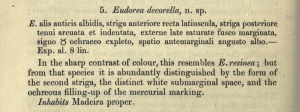 - Erstbeschreibung: Stainton, H. T. (1859): Notes on Lepidoptera collected in Madeira by T. V. Wollaston, Esq.; with descriptions of some new species. — The Annals and Magazine of Natural History, Including Zoology, Botany, and Geology. Third Series 3: 209-214. London (Taylor and Francis).