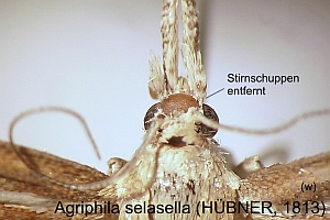 Sehr gute Gegenüberstellung von Agriphila tristella und Agriphila selasella: [British Lepidoptera].