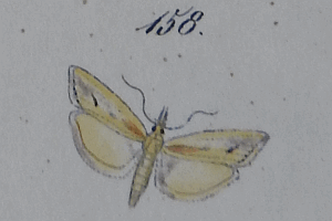 1-2: Herrich-Schäffer ([1849]: Tineides pl. 22 fig. 158) [reproduziert von Jürgen Rodeland nach Band im Staatlichen Museum für Naturkunde Karlsruhe]