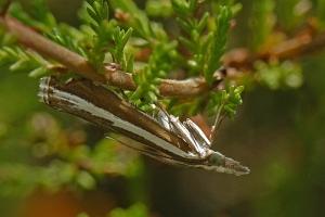 In trockenen Sandheidegebieten ist Catoptria fulgidella keine seltene Erscheinung.