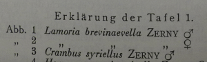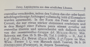 - Erstbeschreibung: Zerny, H. (1933): Lepidopteren aus dem nördlichen Libanon. — Deutsche Entomologische Zeitschrift „Iris“ 47 (2-3): 60-109, pl. 1. Dresden.