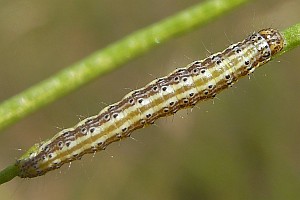 2: Deutschland, Sachsen, Radeburg-Berbisdorf, 2. Juli 2006, leg. Raupen an Sisymbrium loeselii, Falterschlupf 5. Mai 2007 nach Überwinterung als Raupe im Kokon (Studiofoto am 6. Mai 2007: Franziska Bauer), leg., cult. & det. Franziska BauerForum
