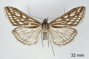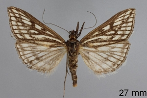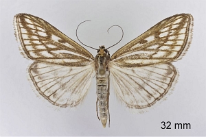 2-3: ♂, Spanien, Daten siehe Etiketten (fot.: Michel Kettner), coll. ZSM, "Pröse-Sammlung", dort unter Loxostege tessellalis Guenée, 1854 einsortiert. - Hinweis: dieses Diagnosebild (samt Etikett) aus Spanien wurde nach einem Hinweis von Thomas Guggemoos aufgrund der bekannten Verbreitung am 12. Januar 2022 von Loxostege clathralis hierher verschoben.