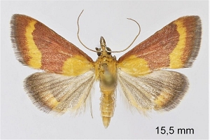 Da der Falter für einen Kleinschmetterling doch recht auffällig ist, sollte sich eine Arealerweiterung seit 2004 eigentlich auch andernorts bemerkbar gemacht haben, doch es scheint keine entsprechenden Beobachtungen zu geben. Völlig aus dem Rahmen fällt jetzt der oben gezeigte Fund eines weiteren Falters aus Österreich mit Funddaten "Steiermark, Fischbacher Alpen, Sommeralm, ca. 1400 m, 27. August 2019, am Licht (Foto: Horst Pichler)". Der Fundort liegt nochmals ca. 150 km entfernt von Motschula und damit nochmals erheblich weiter entfernt von den slowenischen Fundorten um Podgorje. Angesichts der Höhenlage ist hier eine natürliche Fortpflanzung nahezu auszuschließen. Jetzt ist zu fragen: Ist das Tier hier aktiv hingeflogen, wurde es "vom Winde verweht", oder ist passive Verschleppung mit einem Fahrzeug der Grund für den neuen Fundort? Der Finder hält aktive Verschleppung hier für unwahrscheinlich. Auf der Basis der bisherigen Beobachtungen ist es sicher besser, für Österreich vorerst nur das Symbol für Einzelfunde zu verwenden und noch nicht das Vollsymbol. Aber es könnte sich durchaus lohnen, gezielt nach dieser Art zu suchen. Vielleicht hat sich diese Art im Osten Österreichs ja längst an Bohnenkraut in Gärten festgesetzt.