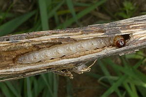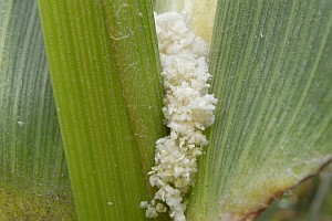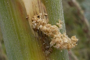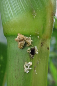 Disqué (1901: 151) berichtet aus der Umgebung von Speyer in der Pfalz: "R. bis April im Stengel von Artemisia vulg., Humulus und Cannabis, ausserdem soll sie noch in Zea mais, Milium effusum und Conyza vorkommen." - Kein Fund an Mais in der Oberrheinebene - heute undenkbar!