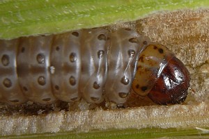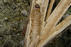 Möschler (1861: 37) wusste zu berichten: "Rpe. im Herbst und Frühjahr in den Stengeln von Hirse und Hopfen."