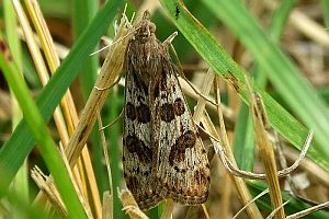 - Beavan, S. D. & R. J. Heckford (2009): A note on the larva, foodplants and a hymenopterous parasitoid of Nomophila noctuella ([Denis & Schiffermüller], 1775) (Lep.: Pyralidae). — The Entomologist's Record and Journal of Variation 121 (2): 79-83.