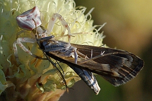 1-3: Krabbenspinne (Thomisus onustus): Bulgarien, Schwarzmeerküste, Russalka, ca. 100 m, 19. August 2010, Tagfund (Freilandfotos: Marion Friedrich)Forum