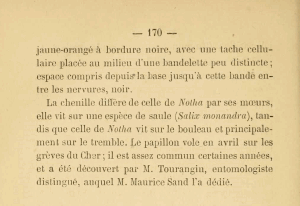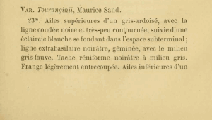 Maurice Sand, der eigentliche Erstbeschreiber der Art, schlug vor, die Art nach ihrem Entdecker, Herrn Tourangin, zu benennen, ein Vorschlag, den Berce (1870) übernahm.