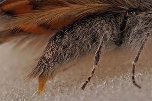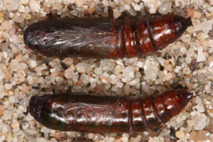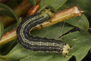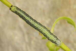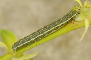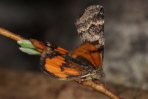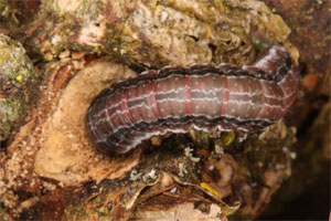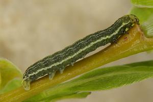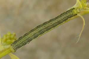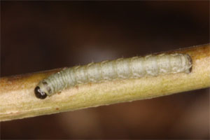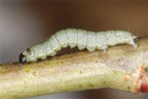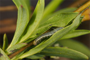 King (2023) stellt dann überraschend fest, dass die Raupe in Spanien nicht an Salix purpurea gebunden ist und dass auch andere Salix-Arten wohl nicht entscheidend sind: Die Raupen leben dort an Populus nigra ! - auch sonst liefert er wichtige Daten zur Phänologie und Biologie der Art: "Nuestras observaciones indican el hecho de que B. touranginii adelanta su época de vuelo hasta febrero-principios de marzo en España central con el hallazgo de las larvas a finales del mes de marzo (la tercera semana de abril en el 2023) coincidiendo con el máximo desarrollo de las yemas de Populus nigra L. o sea, los datos fenológicos no se asemejan a los de Francia, y el hecho de que las orugas pupen a finales de abril, significa que pasan hasta diez meses en esta fase, una adaptación fenológica sin duda al déficit hidrológico en la cuenca mediterránea (Aschmann, 1984). Cabe destacar que la planta huésped no es Salix purpurea L., como se detalla en Lévéque (2011) sin descartar que pueda que sea según muestreos futuros. También se ha de indicar que Salix caprea L. crece en las inmediaciones de los chopos, por lo menos en la localidad de Tres Cantos, donde se recogieron las larvas descritas en este trabajo. Pino Peréz et al. (2021) estudia la distribución de Salix purpurea L. en Orense sin que descubriese la presencia de larvas. Queda por lo tanto conocer si las poblaciones de la Península Ibérica aprovechan esta salicácea como es el caso en Francia. El hecho de que la larva se alimente de dos especies de salicáceas en dos géneros distintos lleva a la conclusión de que se trata de un taxón oligófago."