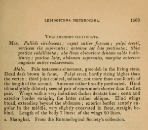 - Erstbeschreibung: Walker, F. [1863] (“1862”): List of the specimens of lepidopterous insects in the collection of the British Museum 26: 1479-1796. London.