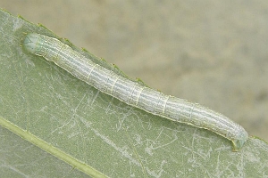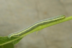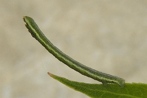 Die nächstverwandte Art ist Macaria artesiaria. So lag es nahe, dass diese Art als Raupe ebenfalls an (schmalblättrigen) Weiden leben dürfte. Fiumi et al. (2009) brachten Weibchen zur Eiablage und züchteten die Tiere dann erfolgreich mit Salix caprea. In ihrer Arbeit werden auch Fotos von Lebensraum und Präimaginalstadien gezeigt. Skou & Sihvonen (2015) können dann über erfolgreiche Raupensuche von M. Leipnitz an Salix triandra, Salix viminalis und Salix purpurea berichten.
