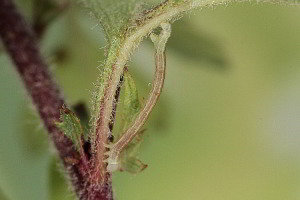 1-2: L2: Griechenland, Ditiki Makedonia, 50300 Siatista (Σιάτιστα) bei Kozani, 740 m, 40°14'28''/21°33'40'', Zucht e.l., Raupe zu Falterbildern 1-2 an Crataegus spec. am 26. Juni 2015 (leg., cult., det. & Foto: Heiner Ziegler)Forum