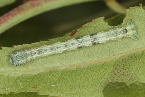 Fritsch et al. (2014) bilden erstmals die Raupe ab, die in zwei Farbvarianten (grün und schwarzviolett) auftritt. Sie wurde auf der ägäischen Insel Samos an Crataegus sp. und Pyrus spinosa gefunden.