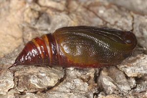 1: ♂ (verdunkelte Form), Deutschland, Sachsen, Dübener Heide, Umg. Doberschütz, Puppenfund am 22. Mai 2010 im Moos am Stamm einer Eiche, e.p. 22. Juni 2010 (leg., cult. & Foto: Heidrun Melzer), det. Daniel Bolt & Thomas Fähnrich