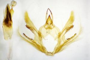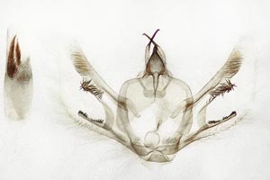 1: ♂, Österreich, Steiermark, Graz, St. Peter, ca. 380 m, Garten, Mischwaldrand, am Licht, 23. Juni 2017 (det., präp. & Foto: Horst Pichler) und [Genitalpräparat neu fotografiert]Forum