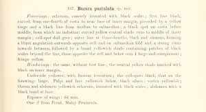 - Erstbeschreibung: Warren, W. (1896): New species of Drepanulidae, Thyrididae, Uraniidae, Epiplemidae, and Geometridae in the Tring Museum. — Novitates Zoologicae 3: 335-419.