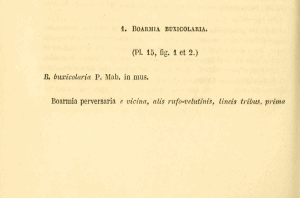 • Beschreibung als Boarmia buxicolaria: Mabille, P. (1873): Recherches et observations lépidoptérologiques. — Annales de la Société entomologique de France. Cinquième série 2: 489-502, pl. 15. Paris.