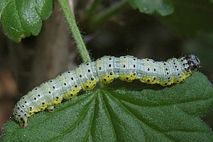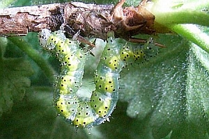 1-2: Deutschland, Sachsen, Dübener Heide, Lindenhayn (bei Bad Düben), Kiefernmischwald, Raupe an wilder Stachelbeere, 16. Mai 2007 (det. & Freilandfotos: Heidrun Melzer)Forum
