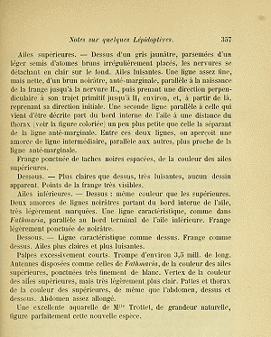 - Erstbeschreibung: Lucas, D. & J. De Joannis (1907): Notes sur quelques lépidoptères. — Annales de la Société entomologique de France 76 (3): 355-370 + pl. 2.