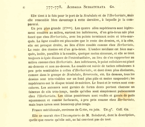 • Erstbeschreibung: Guenée, A. („1857“) [1858]: Histoire naturelle des Insectes. Species général des lépidoptères 10. Uranides et Phalénites. Tome II: 1-584. Paris (Roret).