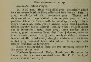 - Original description: Turner, A. J. (1922): Australian Lepidoptera of the Group Geometrites. — Transactions and Proceedings of the Royal Society of South Australia 46: 225-294. Adelaide (Gillingham, Swann & Co., Ltd.).