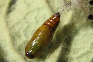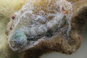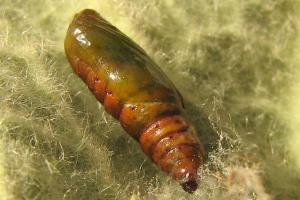 6: Vorpuppe: Deutschland, Baden-Württemberg, Bötzingen am Kaiserstuhl, Weinberge, Raupenfund am 24. Februar 2008 (leg., cult. & Studiofoto am 14. März 2008: Gabriele Krumm), det. Falter Harald Lahm