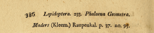 - Erstbeschreibung: Goeze, J. A. E. (1781): Entomologische Beyträge zu des Ritter Linné zwölften Ausgabe des Natursystems, 3. Teil, 3. Band. I-XLVIII + 1-439. Leipzig (Weidmanns Erben und Reich).