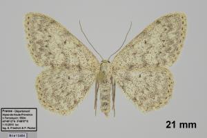 1: 9 mm, Österreich, Niederösterreich, 9 km NNE Wr. Neustadt, Trockenrasen, Raupenfund am 21. April 2008, verpuppt ca. 27. April 2008 (Foto: Peter Buchner), leg., cult. & det. Peter Buchner