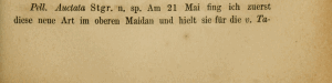 Bei der 4. Lieferung, in der die Erstbeschreibung erschien, ist «15 Mai 1877» offensichtlich ein Druckfehler; gemeint war 1879.