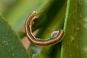 Das einfachste Merkmal zur Unterscheidung beider Arten stellen die Ausprägung und die Anordnung der purpurnen Binden auf den Vorderflügeln dar. Die Vorderflügel von L. purpuraria besitzen zwei, meist weniger deutlich vom Untergrund abgesetzte Binden, die oft nicht bis zum Hinterrand reichen. [Autor: RR, nach Häuser, C. (2001)]