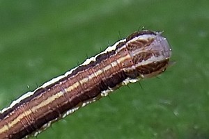 1-2: Deutschland, Sachsen, Noitzscher Heide bei Lindenhayn, Halbtrockenwiese, Raupenfund an kleinem Sauerampfer (Rumex acetosella) am 13. Mai 2007 (leg., cult., det. & Studiofotos am 22. Mai 2007: Heidrun Melzer)