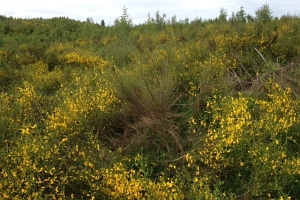 16-17: Deutschland, Niedersachsen, Landkreis Uelzen, Schießbahn Rheinmetall, Dreilinger Weg, alte und weite Ginster-Heidefläche am Waldrand, 86 m, 31. Mai 2016, am Licht (Fotos: Frank Stühmer)Forum