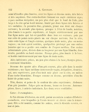 - Erstbeschreibung: Constant, A. (1888): Descriptions de Lépidoptères nouveaux ou peu connus. — Annales de la Société entomologique de France, 6e série 8 (2): 161-172 + pl. 4.